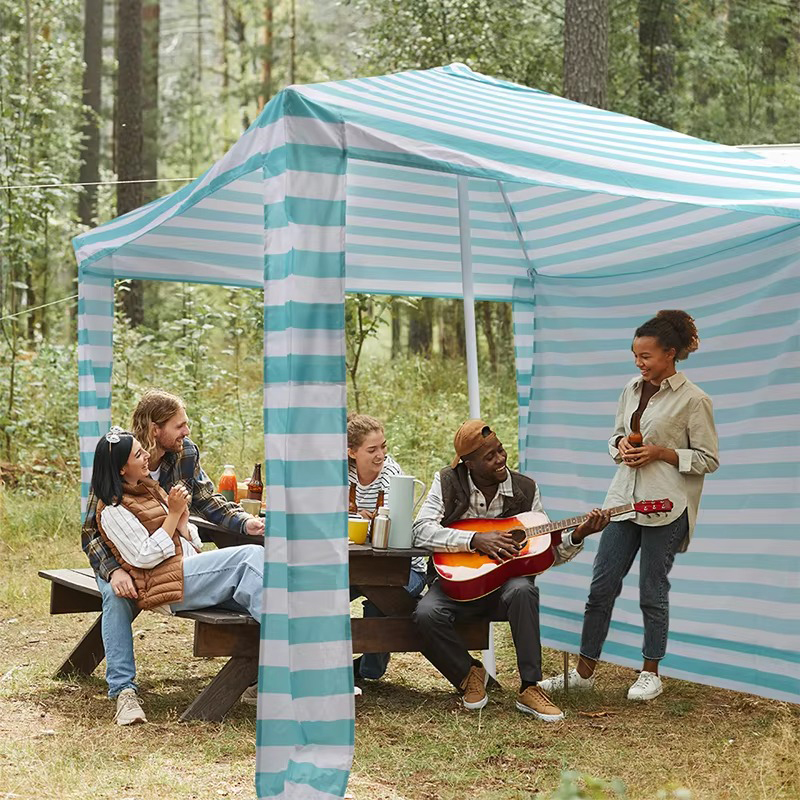 Od pikników rodzinnych po bankiety ślubne, aluminiowe namioty można dopasować z wyglądem kamuflażu, aby połączyć się w naturę, lub mogą stworzyć romantyczną atmosferę poprzez dostosowanie solidnego koloru lub przezroczystego płótna. Przemysł parasolowy Jinqiao oferuje ponad 50 opcji kolorów tkaniny, aby spełnić wymagania sceny, od stylu duszpasterskiego po wysokiej klasy działania.